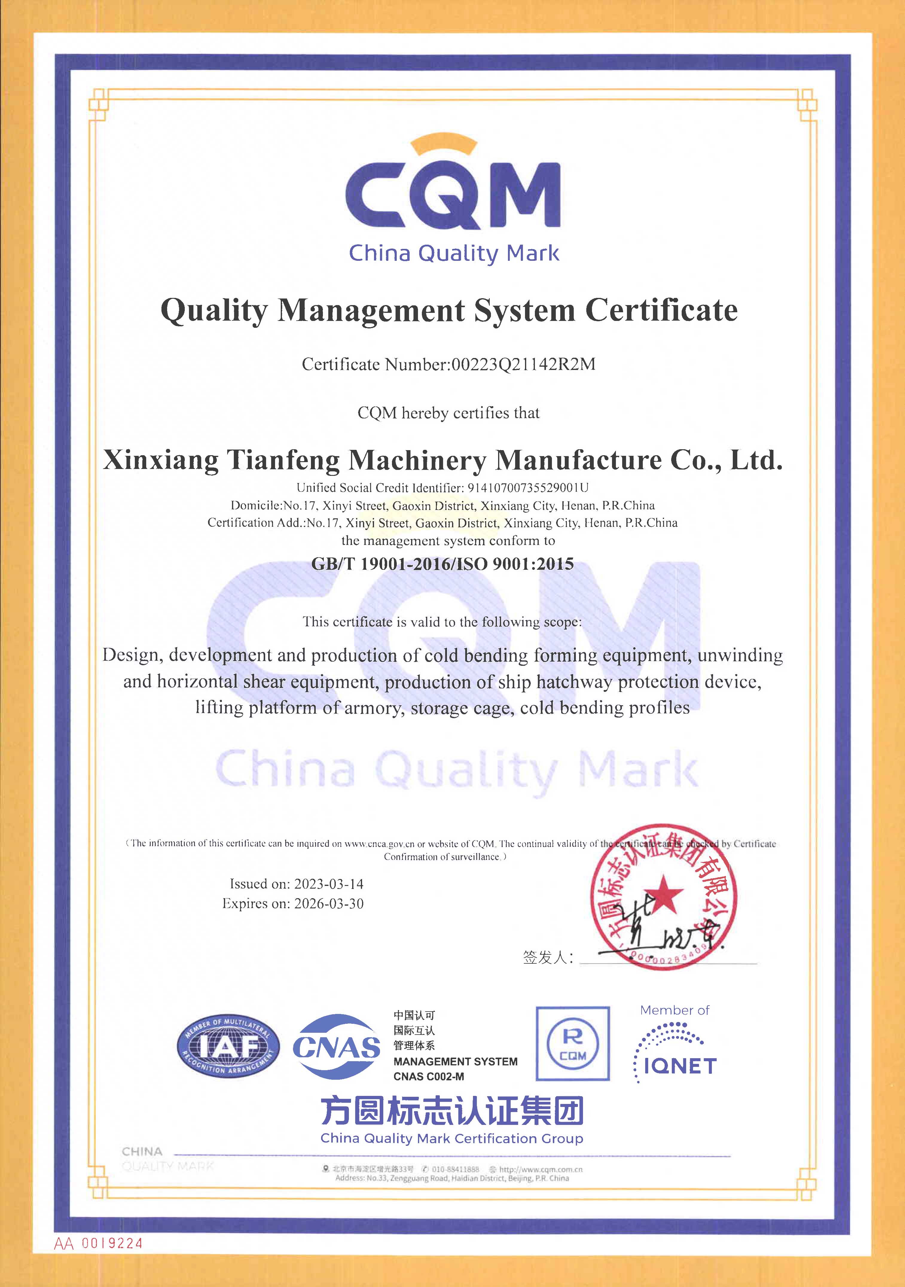 新鄉(xiāng)天豐機械制造有限公司始創(chuàng)于1993年,隸屬于天豐綠色裝配集團,是專業(yè)的冷彎成型方案提供商,是中國冷彎協(xié)會副理事長單位、行業(yè)標準起草單位、國家高新技術企業(yè)、河南省制造業(yè)信息化重點示范企業(yè)、河南省重合同守信譽企業(yè),并取得多項自主知識產(chǎn)權,通過ISO9001質(zhì)量體系認證,客戶遍布世界多個國家和地區(qū)。