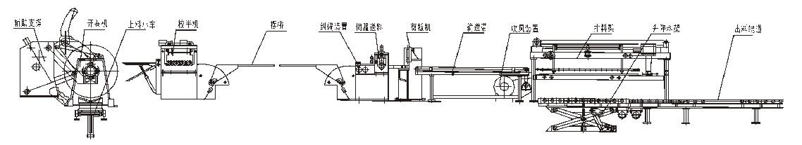 生產(chǎn)線主要由上料小車、開卷機、校平機、送料機構(gòu)、剪板輸送裝置、堆垛裝置等組成。